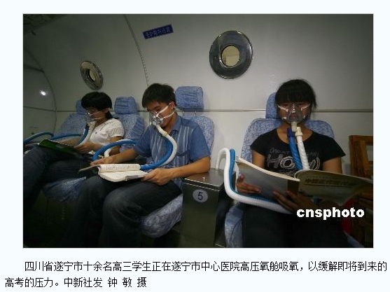 但是,无论中外,如果你去搜索高压氧舱治疗的信息,会看到各种宣传资料中声称的可以进高压氧舱的疾病多了去了。从失眠、健忘、哮喘、过敏、偏头痛、心脏病直至癌症和艾滋病。这些“声称”的效果也正是支撑我国4000台高压氧舱的“理论基础”。更有甚者,有报道某地让临考的高考考生到高压氧舱吸氧“放松”。